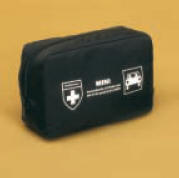 MINI Verbandtasche Kfz - Verbandtasche aus Nylon mit Reißverschluss und 2 Klettbändern auf der Rückseite sowie Außenschutzfolie Inhalt nach DIN 13 164, 19 x 12 x 8 cm, schwarz