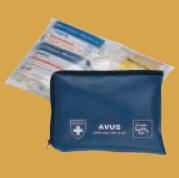 AVUS Verbandtasche Motorradverbandtasche aus weichem Kunstleder mit Reißverschluss und Außenschutzschutzfolie Inhalt nach DIN 13 167, 21 x 14 x 3,5 cm, blau