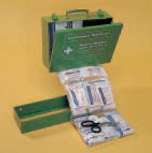 Verbandkasten, groß Betriebs - Verbandkasten aus Stahlblech, lackiert, mit Gummidichtung, plombierbar, in Einzelkarton verpackt Inhalt nach DIN 13 169, 35 x 25,5 x 10,5 cm, grün |