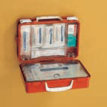 aus schlagfestem ABS - Kunststoff, leer, transparente Abdeckplatten zum Schutz der Füllteile, mit Gummidichtung, variable Inneneinteilung durch Trennstege, plombierbar, 90° - Stop - Arretierung durch aufsteckbares Modul, inkl. Montagematerial, gefüllte Koffer nur in orange QUICK gefüllt mit DIN 13 157 |