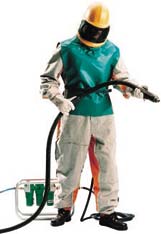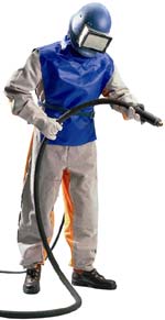 | Die Strahlschutzgeräte COMMANDER ZGH II und PANORAMA sind für Strahlarbeiten gemäß DIN EN 271. Die dreifache Schutzwirkung – Atemschutz, Kopfschutz und Rumpfschutz – sorgt für Sicherheit beim Strahlen. Mit auswechselbarem Körperschutz in unterschiedlichen Versionen. Der Gummi-Überzug dient zur Geräusch- und Verschleißminderung. Die Strahlschutzgeräte sind bequem zu tragen, zuverlässig und sicher. | |