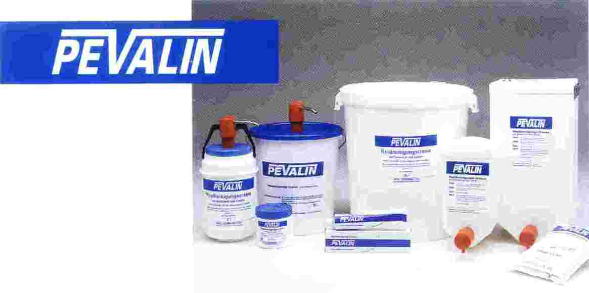 PEVALIN Spezial Zur gründlichen Entfernung von hartnäckigen Verschmutzungen, auch Kunstharz-, Nitro- und Tiefdruckfarben, sowie Öle, Fette, Teer, Bitumen, PU-Schäume, etc. Auch ohne Wasser anwendbar.