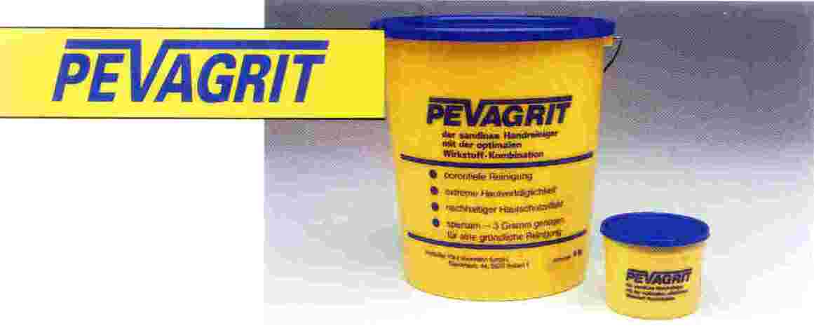 PEVAGRIT Zur Entfernung von leichten bis mittleren Verschmutzungen. Pevagrit ist eine schonend reinigende Handreinigungspaste auf Kunststoffreibemittelbasis von hoher Qualität. PH-neutral. Dermatologisch getestet. |