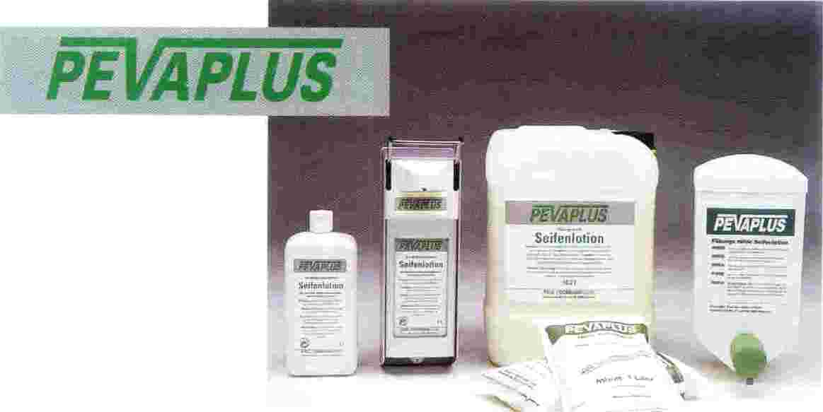 PEVAPLUS Zur sehr schonenden Entfernung von leichten Verschmutzungen aller Art. Pevaplus ist eine milde hochwertige Seifenlotion mit optimaler Wirkstoffkombination. Pevaplus ist angenehm im Duft und sparsam im Gebrauch. PH-neutral. Pevaplus ist aufgrund der milden Rezeptur auch für den gesamten Körper geeignet.