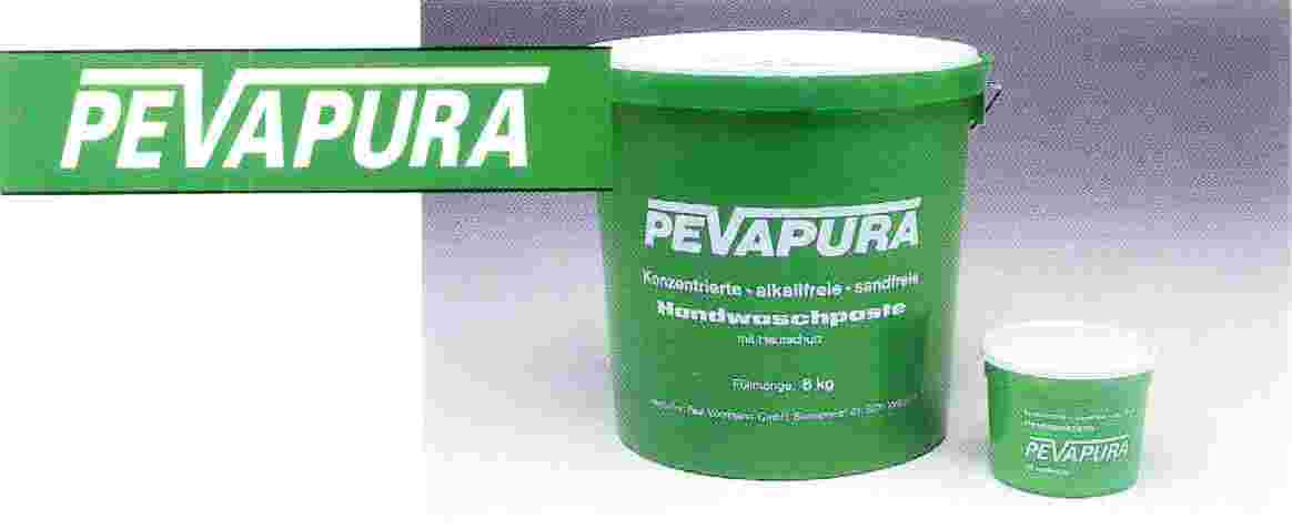 PEVAPURA Zur Entfernung von leichten bis mittleren Verschmutzungen. Pevapura ist eine schonend porentief reinigende Handreinigungspaste auf Holzmehlbasis von hoher Qualität. PH-neutral. Dermatologisch getestet. |