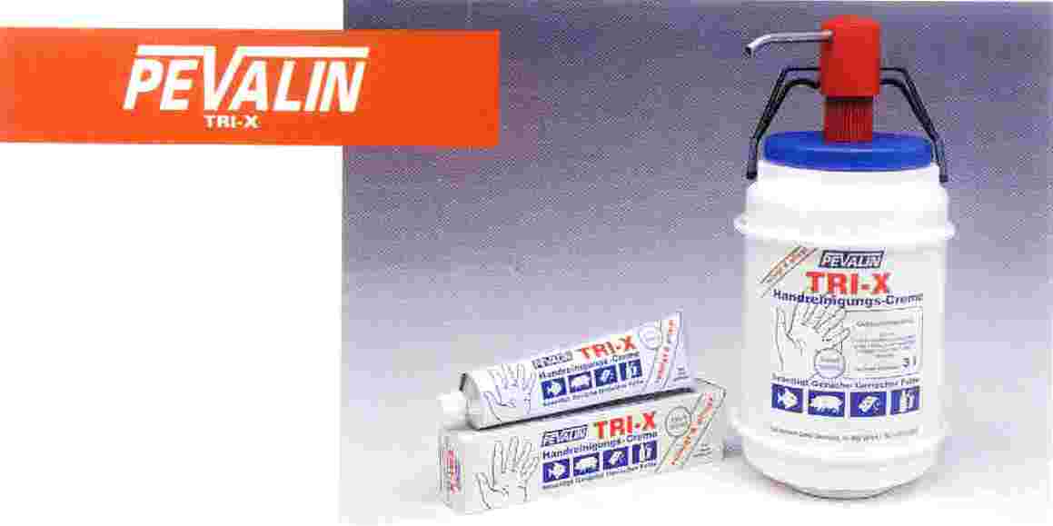 Pevalin Tri-X ist eine hochwertige, schonend porentief reinigende O/W-Handreinigungscreme mit nachhaltigem Hautschutzeffekt und ausgewogener Rückfettung. Enthält Lanolin-Pflegesubstanzen.
