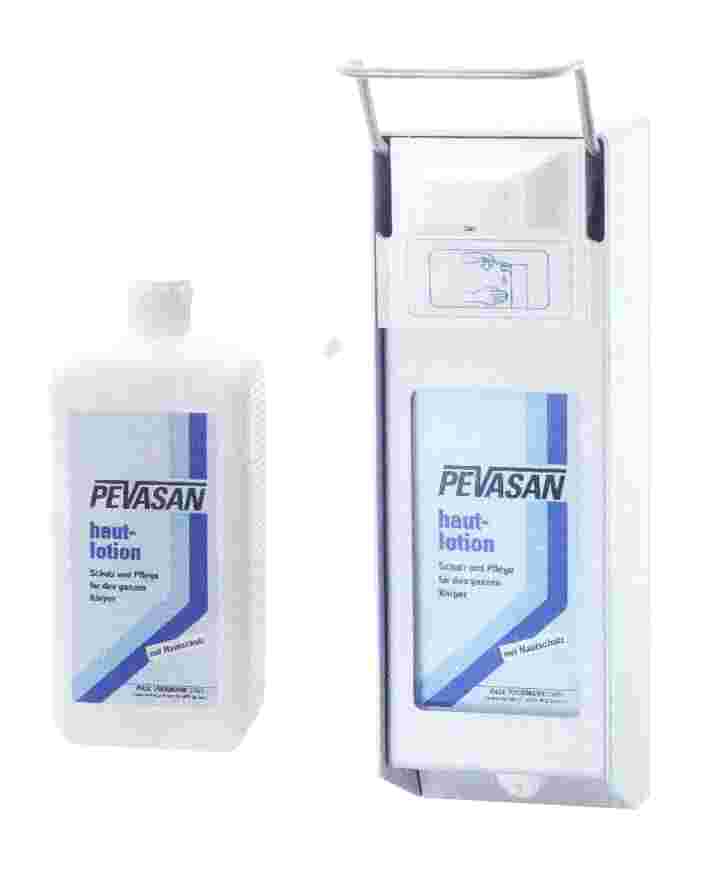 Pevasan Hautlotion. Zum Schutz vor wasserunlöslichen Schadstoffen. Zur Hautpflege Regeneration und Gesundheiterhaltung strapazierter Haut Anwendungsgebiete sämtliche Berufsgruppen, Haushalt, Freizeit (mäßige Hautbelastung) |