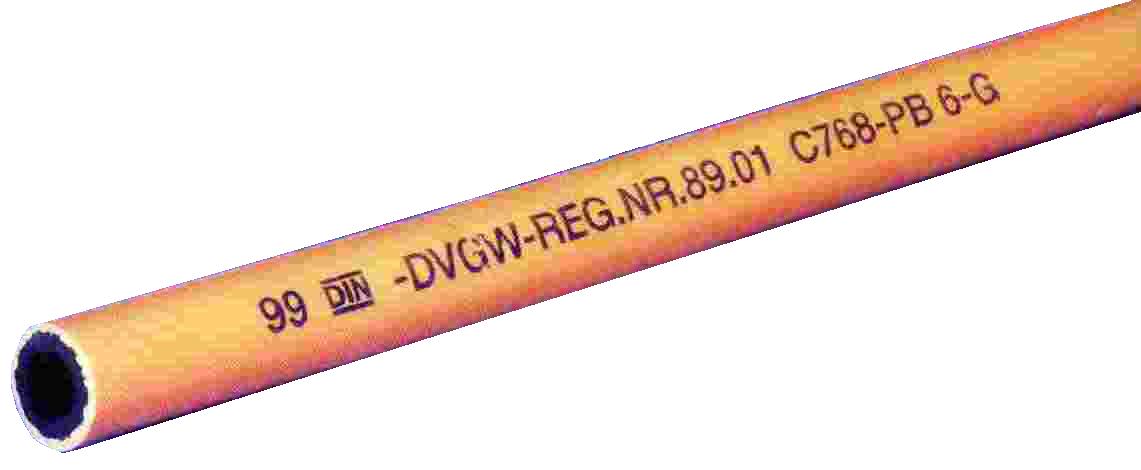 Aus synthetischem Polymer, inne schwarz, außen orange, außen glatt, für Flüssiggase, Propan und Butan, nach DIN DVGW geprüft mit Prüfnummer. |