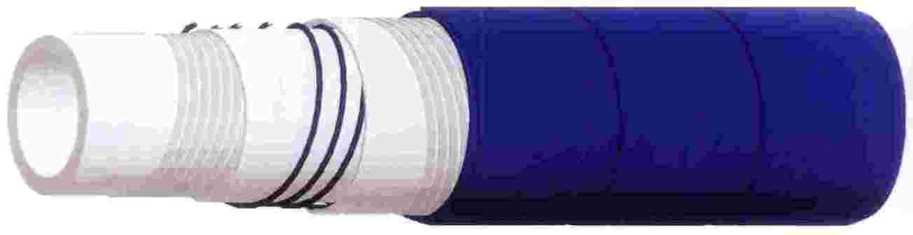 Getränke- und Brauereischläuche mit Spirale Die leichten Lebensmittelspiralsaug- und druckschläuche. Innen und außen glatt, außen stoffgemustert, mit verdeckt liegender Stahldrahtwendel. Geeignet für volles Vakuum und 6 bar Betriebsdruck, 18 bar Berstdruck. Geeignet für Trinkwasser, Seewasser, Milchprodukte, Bier, Wein, Fruchtsäfte und hochprozentigen Alkohol. Einzusetzen im Temperaturbereich von -30 bis + 80°C, zu Reinigungszwecken kurzzeitig dämpfbar bis +110°C. Schlauchseele: Weißer Gummi, Lebensmittelqualität nach FDA und BGA Einlagen: Hochreißfeste Synthetikcordeinlagen und 2 Stahldrahtspiralen Schlauchdecke: EPDM blau, abriebfest, lichtriss- und ozonbeständig
