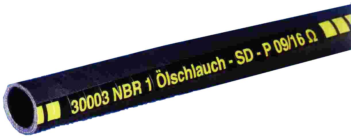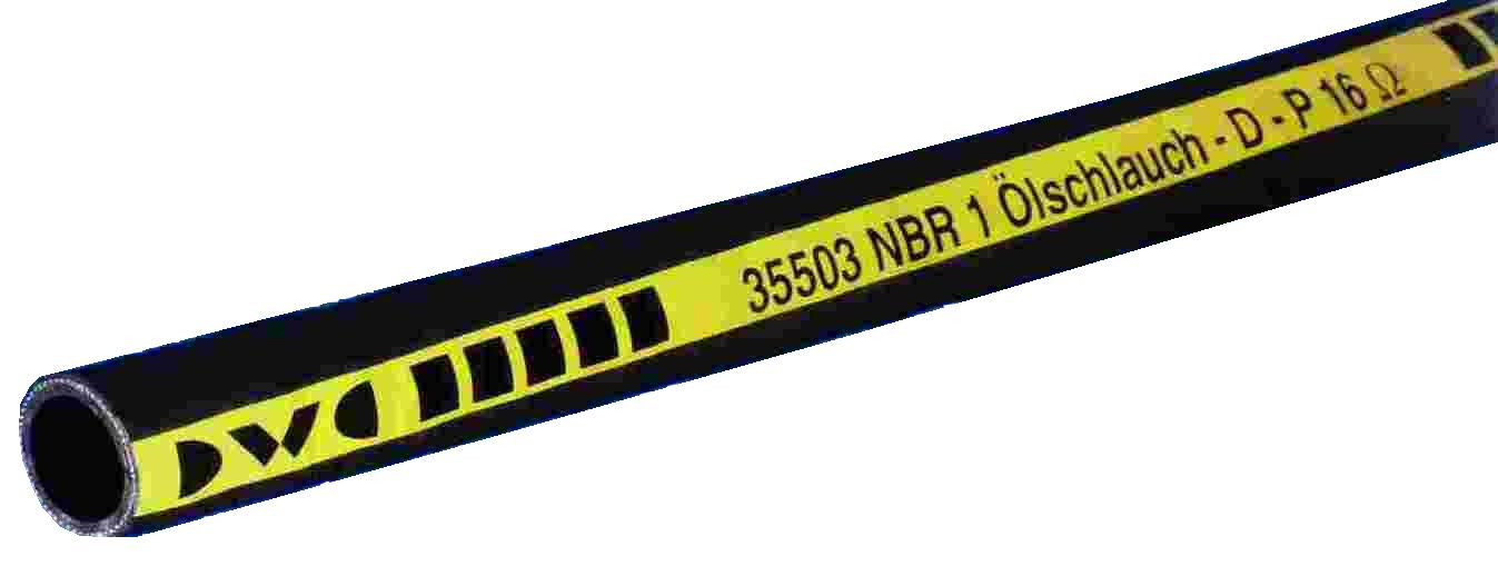 Öl- und Benzinschlauch mit Einlagen Flexible Gummischläuche mit Textileinlagen, innen und außen schwarz. Innen NBR - Gummi, beständig gegen Mineralöle und Treibstoffe mit einem Aromatenanteil bis 50%. Bis L.W. 25 x 5 mm Schlauchdecke glatt, NBR/ PVC Verschnitt, mineralöl- und treibstoffbeständig, sehr abriebfest, wetter- und ozonbeständig. Einzusetzen im Temperaturbereich von -20 bis +60°C. Ab L.W. 19 x 6 mm Schlauchdecke Cr - Gummi, schwarz, stoffgemustert, mit gelber Kennzeichnung, ausgerüstet mit Kupferlitzen. Abriebfest, öl-, wetter- und ozonbeständig. Temperaturbereich -30 bis +90°C.