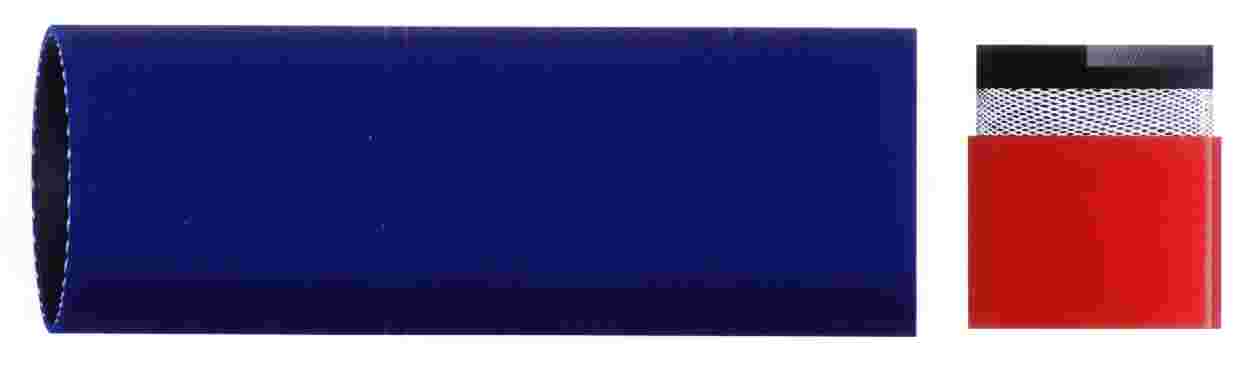 PVC - Flachschläuche aus Weich - PVC, innen schwarz, mit Polyestereinlagen, Standardausführung außen blau, verstärkte Ausführung außen rot. Geeignet als Druckschlauch für Flüssigkeiten, in der Landwirtschaft, Bauwirtschaft und Industrie, auch für Tauchpumpen. Gute Beständigkeit gegen Chemikalien und Öl. Leicht, flach rollbar. |