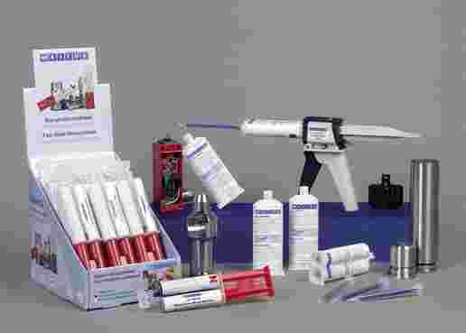 - Komponenten über ein statisches Mischrohr. Ein schnell- (ca. 5 Min.) und ein normalhärtender Klebstoff stehen zur Auswahl. Sauberkeit und eine einfache Handhabung sind gegeben. Insbesondere in der Serienfertigung lassen sich dadurch erhebliche Kosten (Materialverlust) einsparen. Beide Klebstoffe verbinden unterschiedliche Materialien extrem stark und doch noch restelastisch.