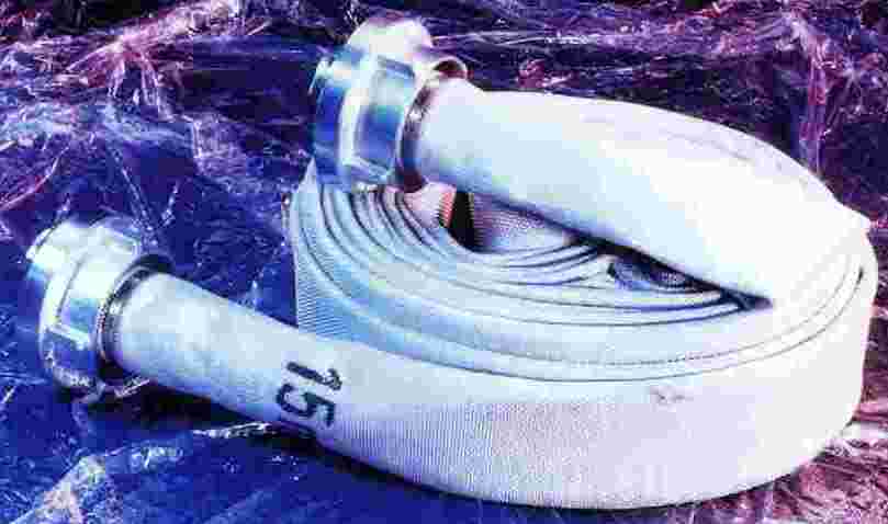 Feuerlöschschläuche Ausf. Bausynthetik, mit Innengummierung, außen rundgewebtes Polyestergarn, naturfarben, hell. |